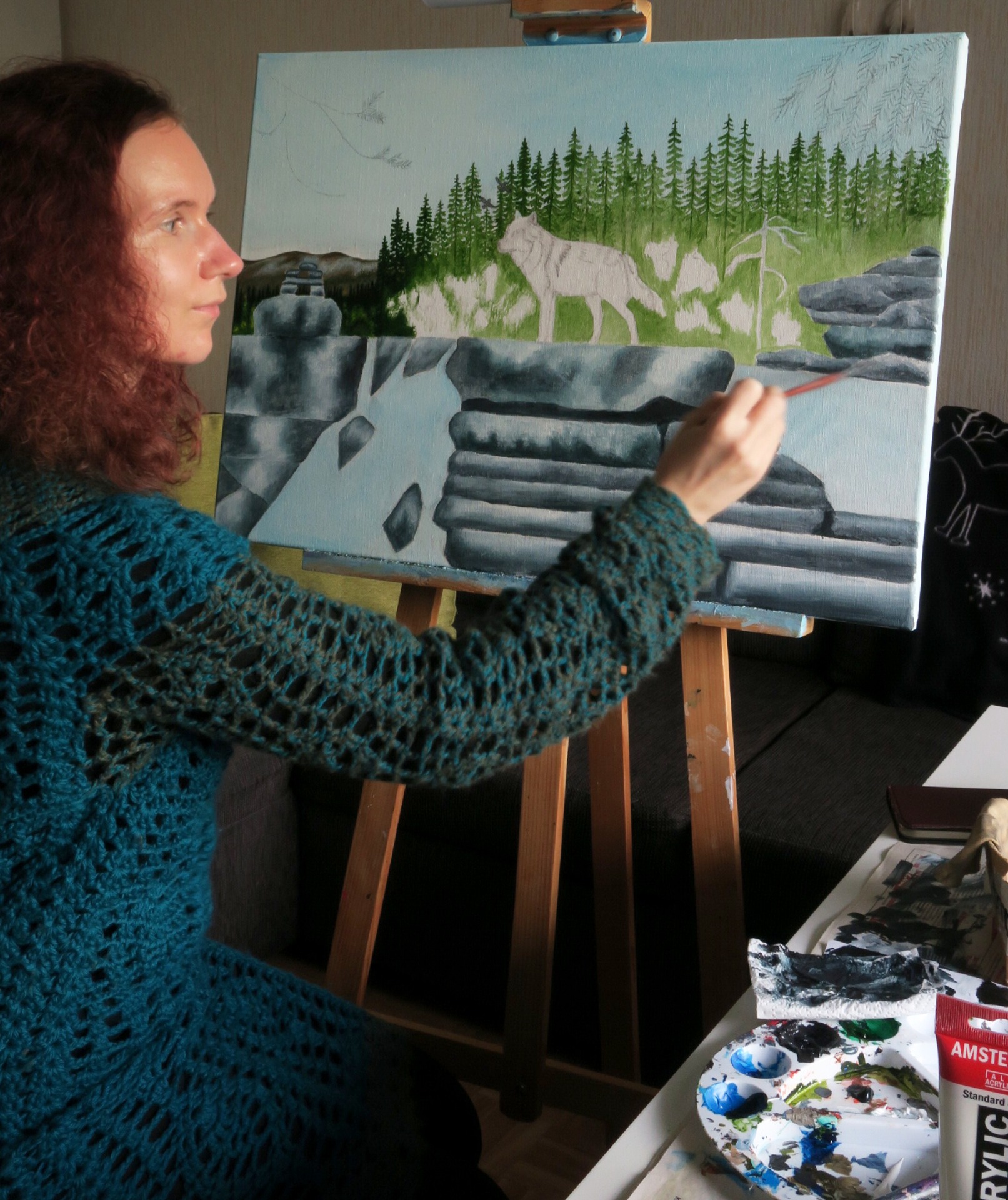 Taiteen luomisessa palkitsevaa on myös nähdä oma kehityskaari vuosien aikana: kuinka löydän aina uusia oivalluksia omaan tyyliini, värisävyjen löytämiseen ja eläinten sekä ihmisten elävyyteen. Maalaustekniikoinani suosin akryyli- ja akvarellivärejä, jotka sopivat yksityiskohtaisen ja kerroksellisen maalaustyylini toteuttamiseen: esimerkiksi eläinten turkeissa tai revontulien loimuissa saattaa olla moniakin sävykerroksia, mitkä "kuultavat" toistensa lävitse luodakseen eloisan vaikutelman.