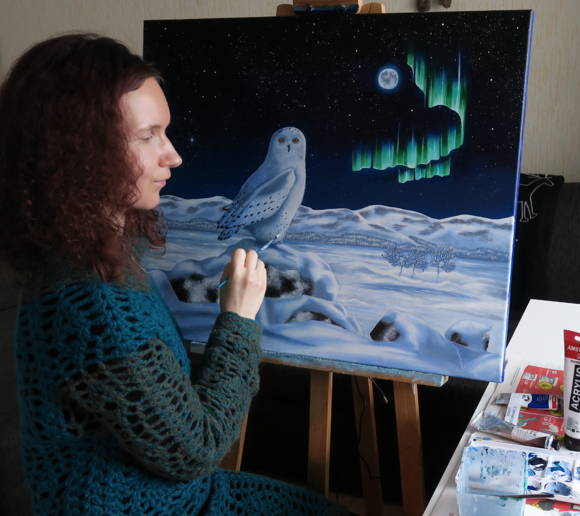 Taiteellisessa työskentelyssä ja luomisessa on palkitsevaa nähdä myös oma kehityskaari vuosien aikana: kuinka löydän aina uusia oivalluksia omaan tyyliini, värisävyihin sekä eläinten, maisemien ja ihmishahmojen elävyyteen. Akryyli- ja akvarellivärit ovat minulle luontaisimmat tekniikat, koska ne sopivat parhaiten yksityiskohtaisen ja kerroksellisen maalaustyylini ja käsialani toteuttamiseen: esimerkiksi eläinten turkeissa, revontulien loimuissa ja lumihangen sävyissä on useita sävykerroksia ja häivytyksiä, mitkä "kuultavat" toistensa lävitse luodakseen eloisan vaikutelman.